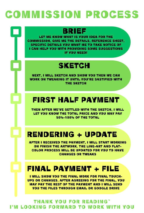 | - Human (male, female, young age to middle age) real human to anime. -Furry/Kemono/Anthro creatures (animals, Pokemons, etc.) | - Old age people. -Heavy mecha, weapons, detailed machine. -NSFW, gore, violence, hatred speech. |